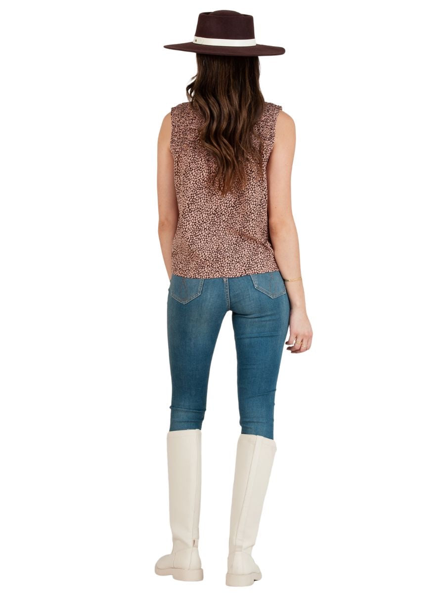 This  Funnel neck  top features a pleated yolk both at the front and back, and a mock neck for a timeless look that works throughout the year.