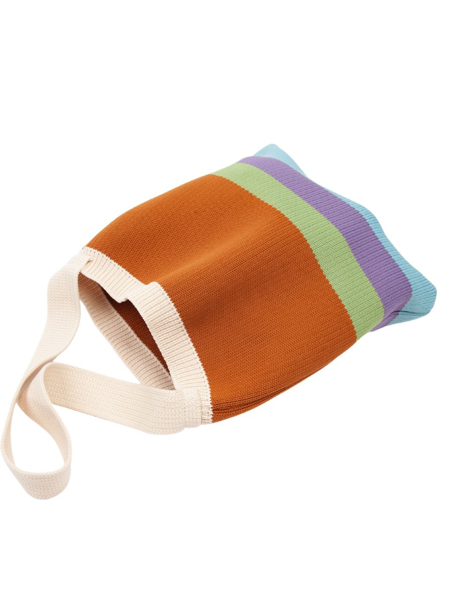 Colorblocked knit tote bag, perfect for an all year round accessory and traveling!