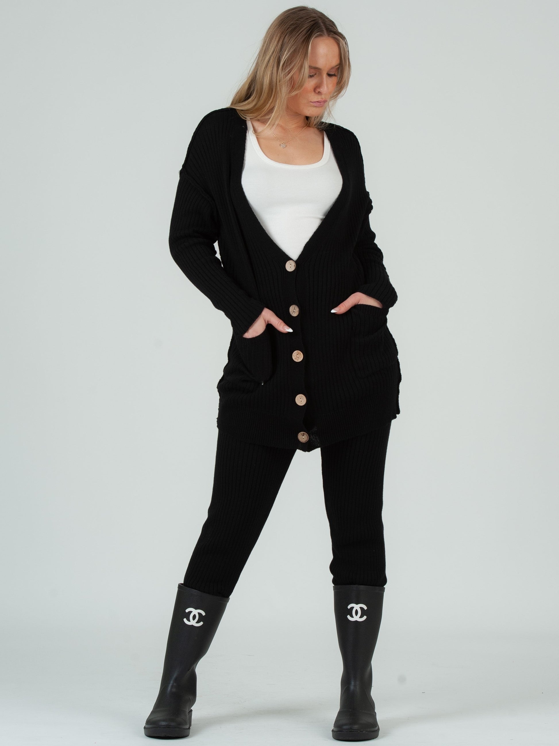 Ribbed cardigan with pockets and button detailing! Wearing with matching pants for styled ensemble!
