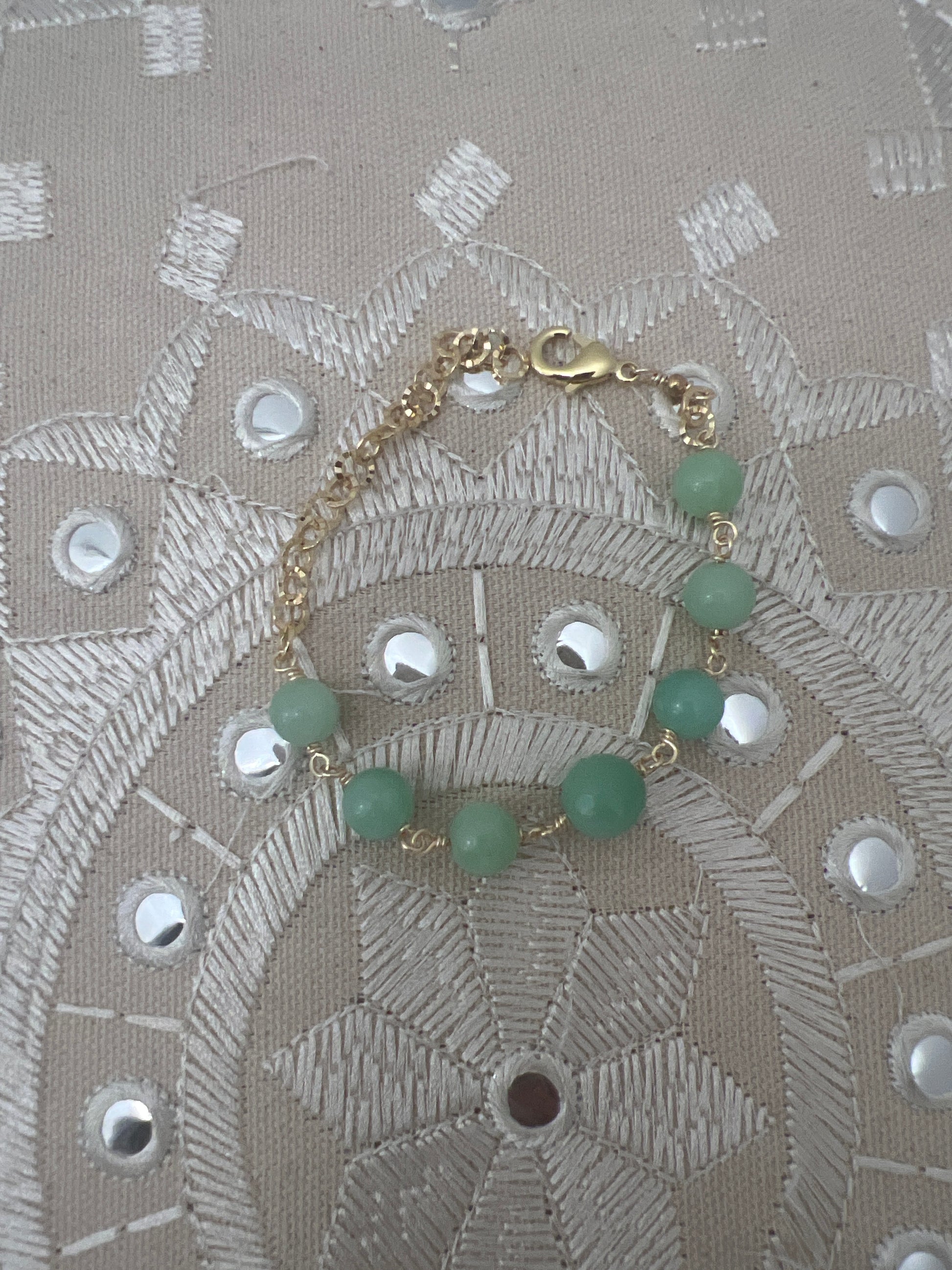 Natural Burmese Green Jade & 18K plated gold bracelet