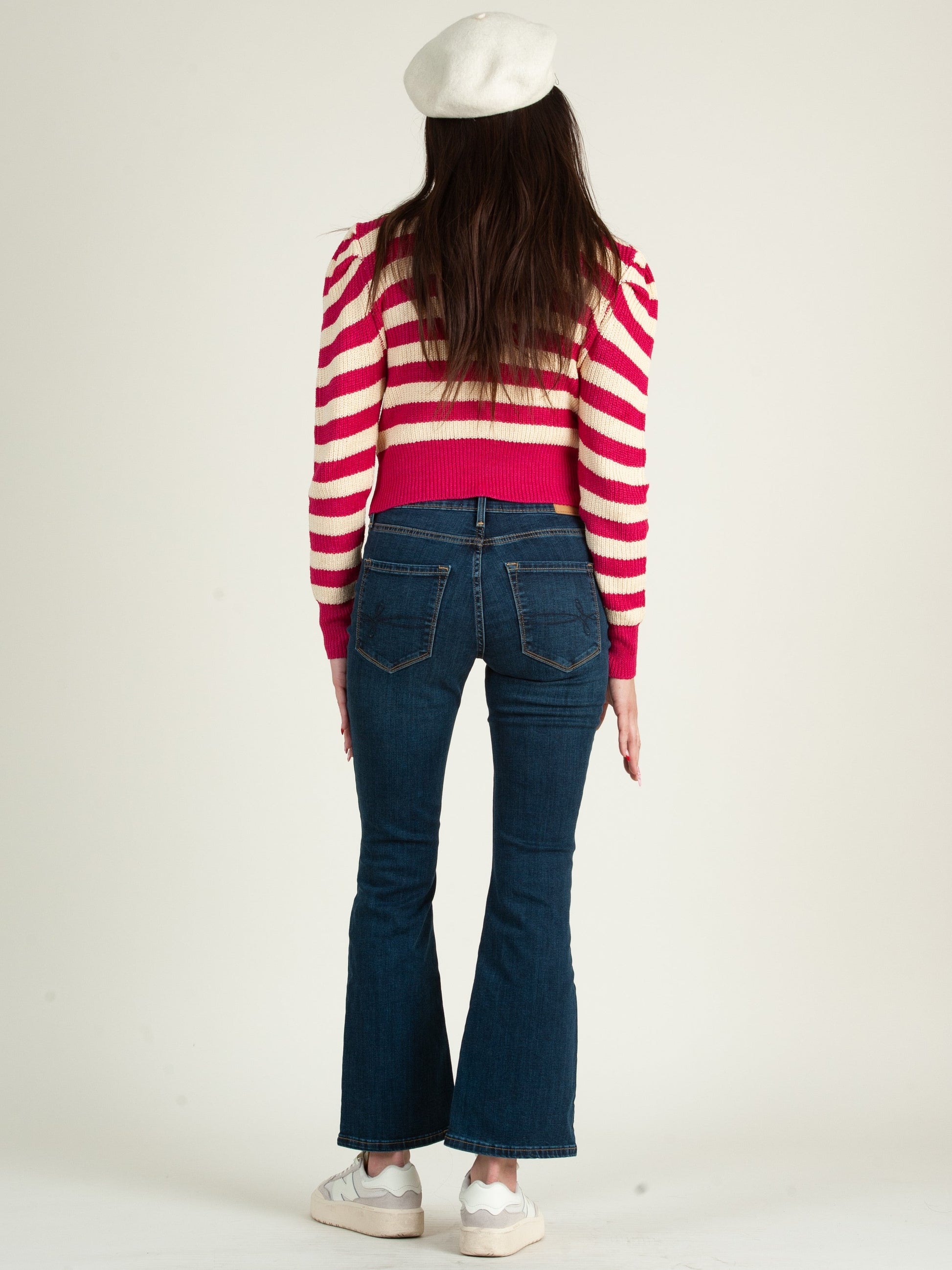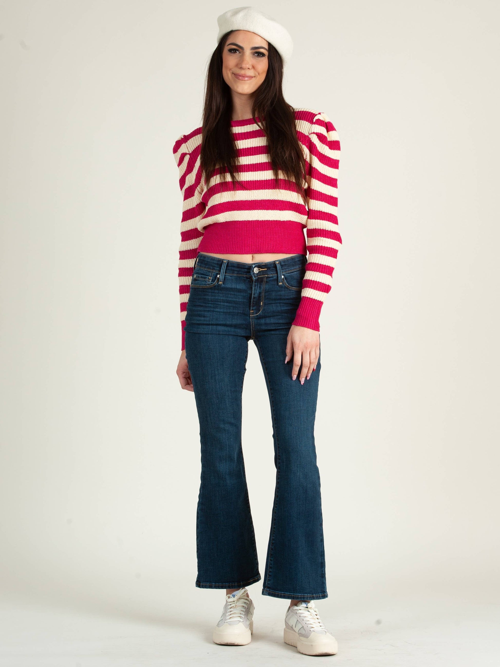 Flattering puff shoulder sweater top! Wear on its own with classic denim or pair w/ overalls for a streetstyle inspired look!