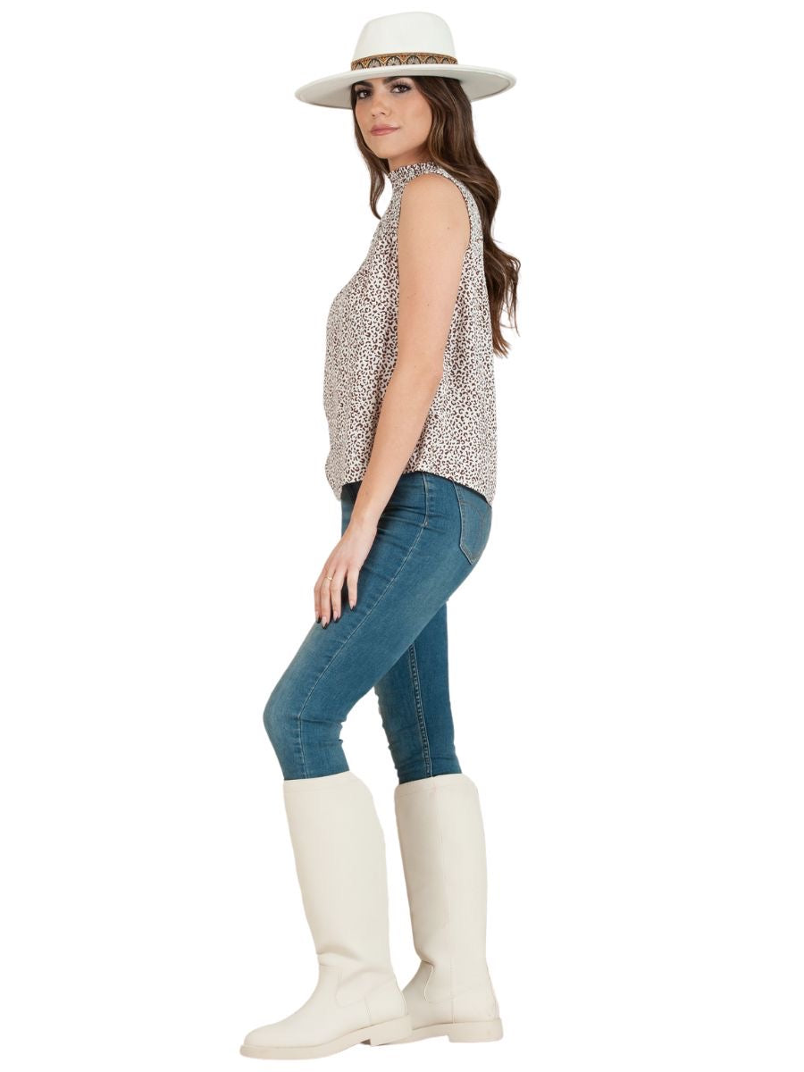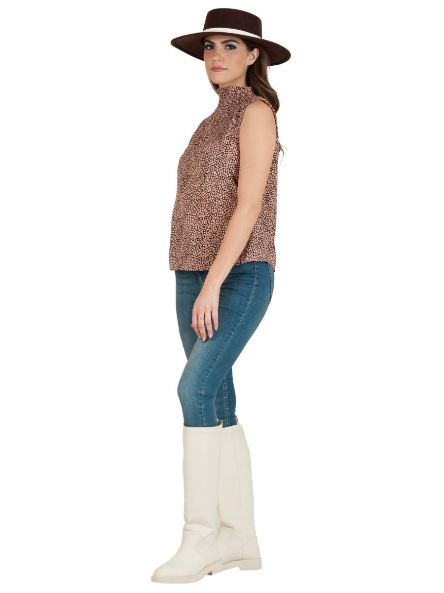 This Funnel neck top features a pleated yolk both at the front and back, and a mock neck for a timeless look that works throughout the year.