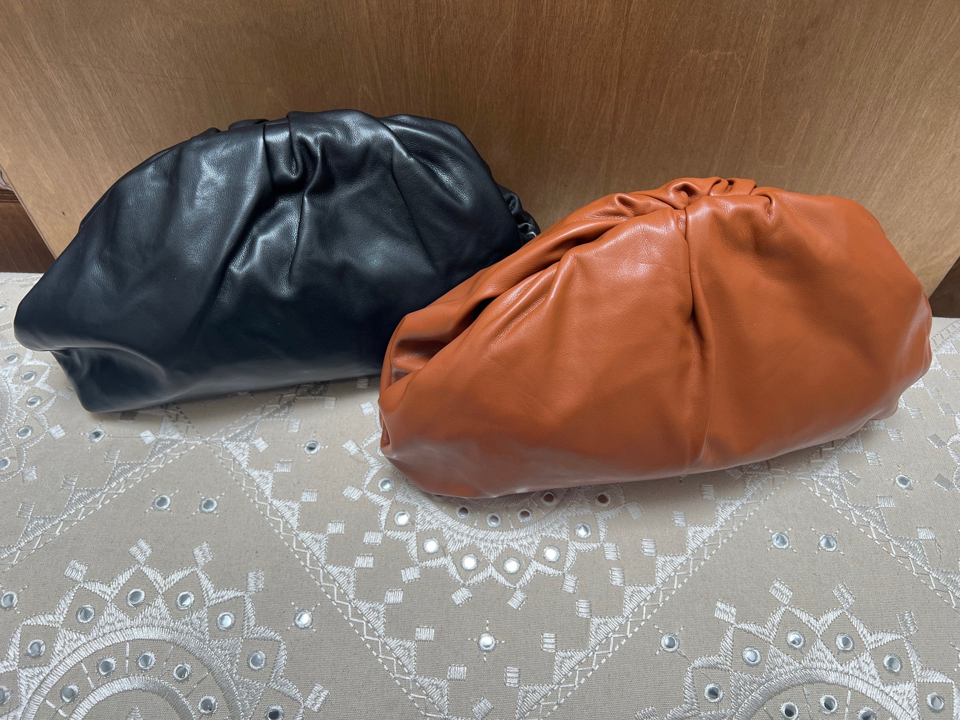 Soft vegan leather use as clutch or cross body or shoulder bag with the detachable gold chain strap.